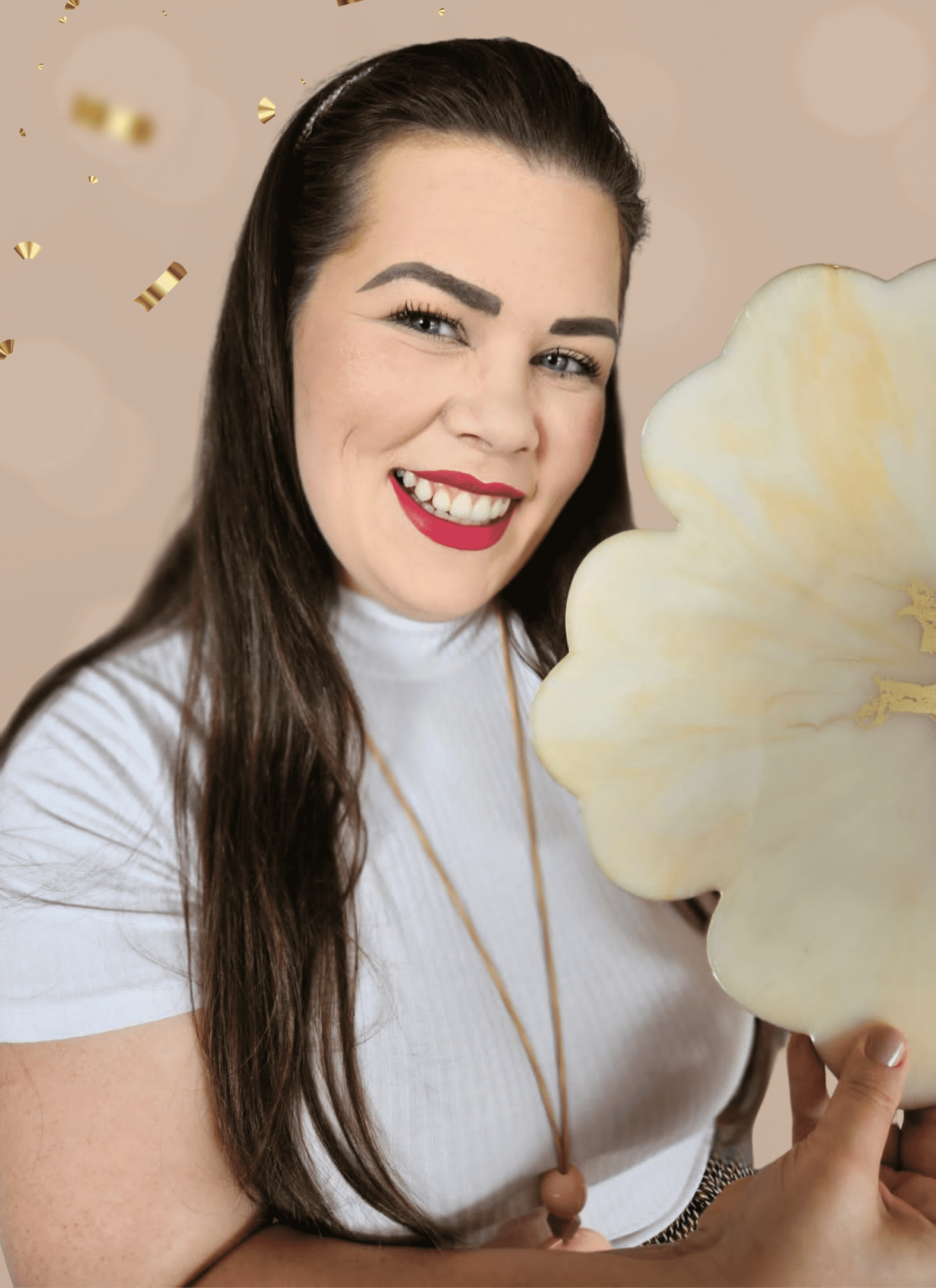 A arte sempre fez parte da minha história, e mesmo com as mudanças da vida e da rotina, a essência criativa nunca deixou de existir dentro de mim e foi com a maternidade que essa chama se reacendeu de forma intensa e transformadora. Em meio às emoções e descobertas dessa fase, conheci a possibilidade de eternizar momentos através da resina — e ali compreendi que poderia transformar sentimentos em obras que atravessam o tempo.
