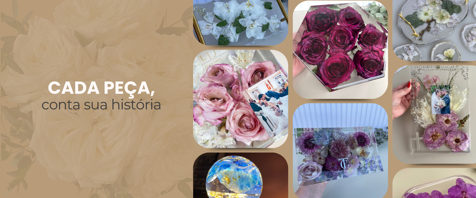 Mais do que produzir arte em resina, meu propósito é eternizar capítulos únicos da vida — transformando flores, lembranças e emoções em peças que carregam significado, beleza e afeto para sempre.